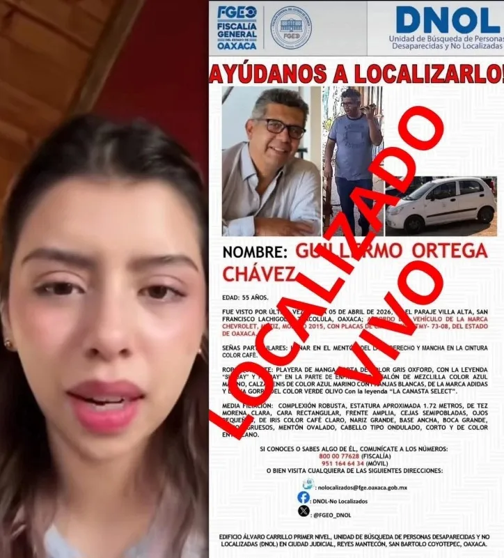 De acuerdo con la información preliminar, Ortega Chávez fue localizado en un paraje del distrito de Ocotlán de Morelos, luego de que él mismo logró ponerse en contacto con su familia.